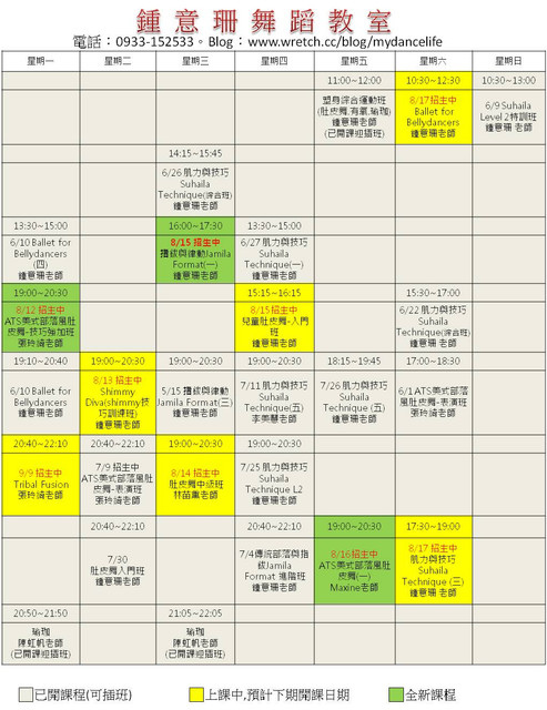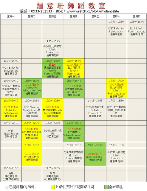 註:以下所有課程,原價:1堂/2小時NT$3,000,1堂/3小時4,500。1/7(二)~1/10(五)歡迎教室/舞團包班、個人班。聯絡電話0933-152533